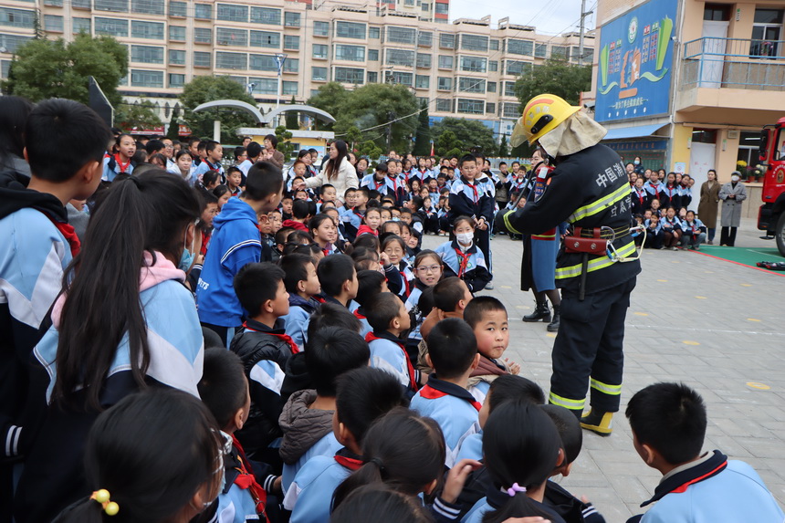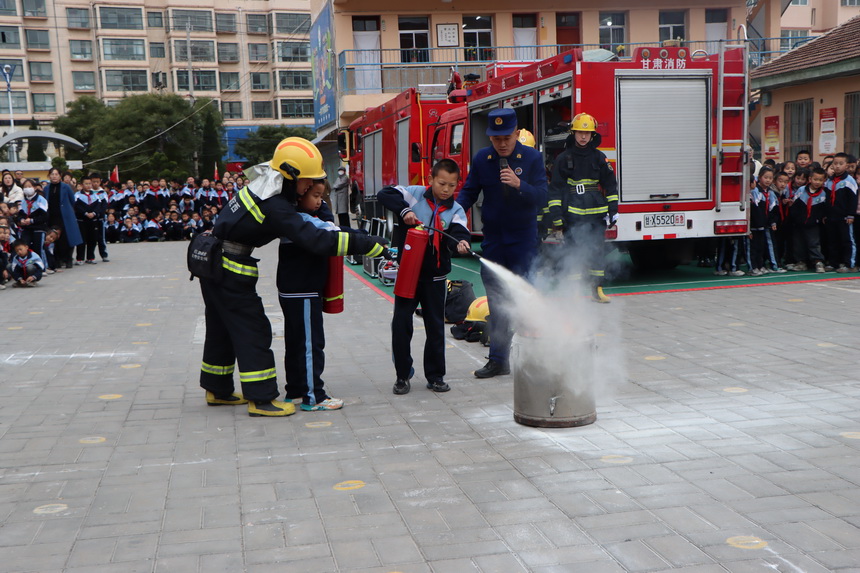 11月5日,甘肃省陇西县消防救援大队走进陇西县尉家店小学开展安全知识培训及疏散演练活动,在校2000余名师生参加培训演练活动。
