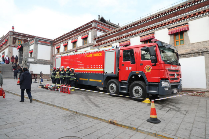 “请不要在酥油花展区使用打火机、火柴等易燃易爆物品。”藏族消防文员杨成萍用汉藏双语重复着提示。另有几名消防文员在寺院入口、展厅等人员密集区域发放精心制作的消防安全手册,向游客和工作人员普及火灾预防、逃生自救等知识。